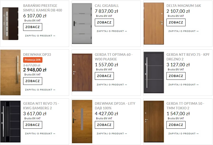 Drzwi w dobrej cenie zaczynają się od 100 złotych za najprostsze modele wewnętrzne. Jednak warto rozważyć zakup w przedziale 200-400 zł, gdzie znajdziemy już solidniejsze konstrukcje.